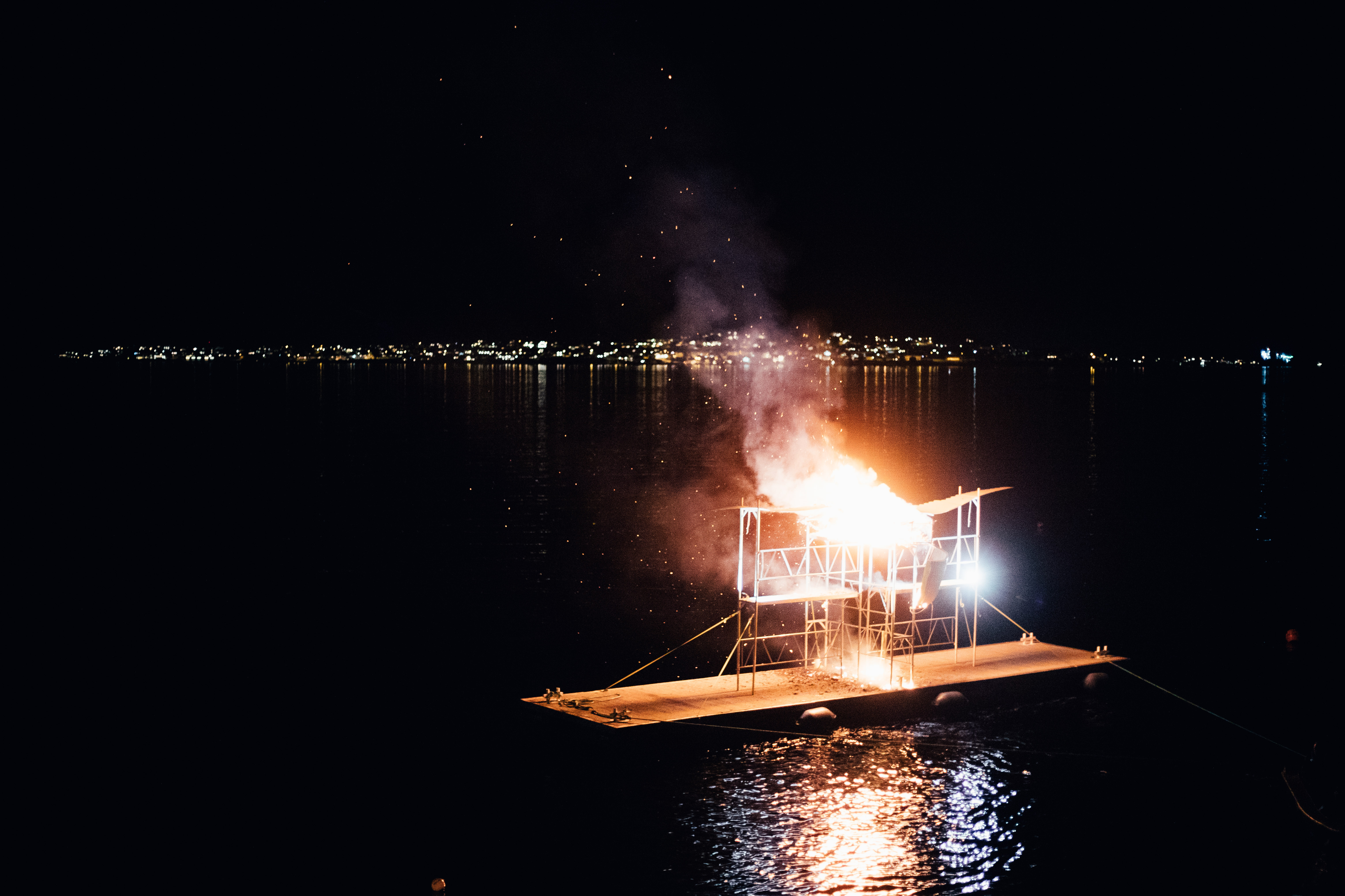 Vadmelsbanden is a theatre group that I take part in, both as a writer, an actor and a co-creator. The group produces outdoor performances in close relation to nature. We work with organic, natural and acoustic elements. With torches, lanterns and fires as the only light design, and horns and old norwegian instruments for the soundscape. We work with timeless and core human themes, such as death, grief, and the relation between human and nature.